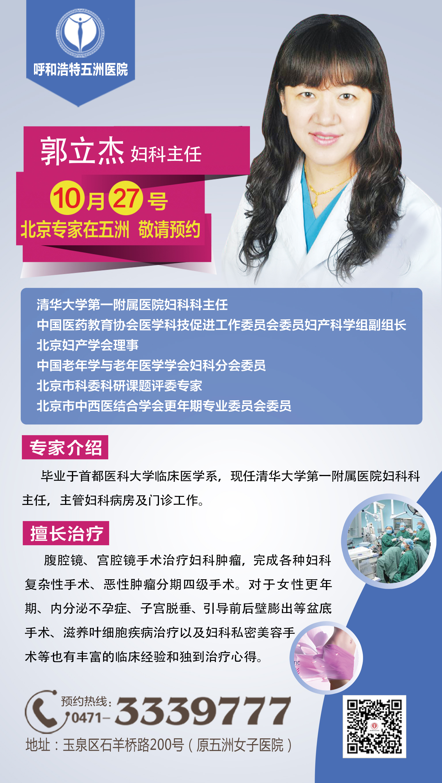 以上就是呼和浩特五洲医院妇科专家对于"【五洲名医堂】10月27日,清华大学第一附属医院"的详细介绍,希望对大家有帮助。如想了解更多,欢迎点击在线咨询或者拨打健康热线:0471-3339344,权威专家会一一为您解答。