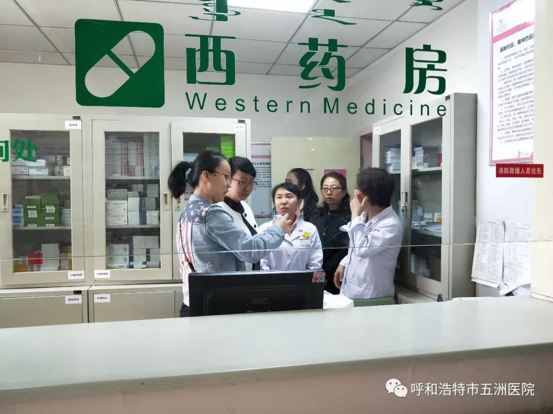 图为玉泉区政府领导等一行人参观西药房