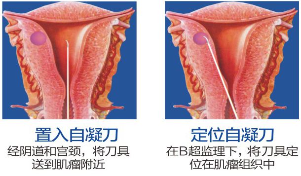 ★定位准确:B超能清晰的监视自凝刀,并能准确的将其引导介入到肌瘤预定部位