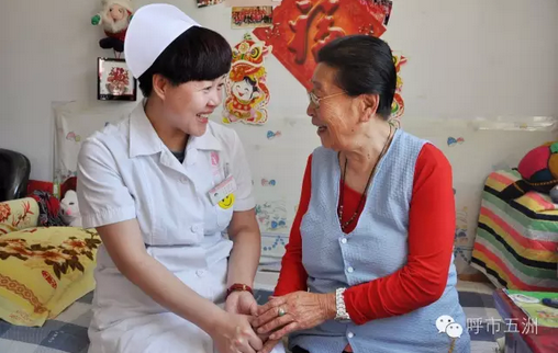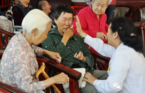 五洲医院医务人员的节日问候,使老人们留下了感动的泪水