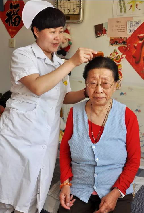 为老人梳理头发
